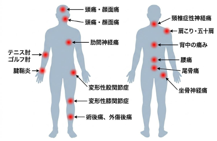 下肢手術後痛、腰痛症、仙腸関節痛、肩や膝の変形性関節症・関節周囲炎